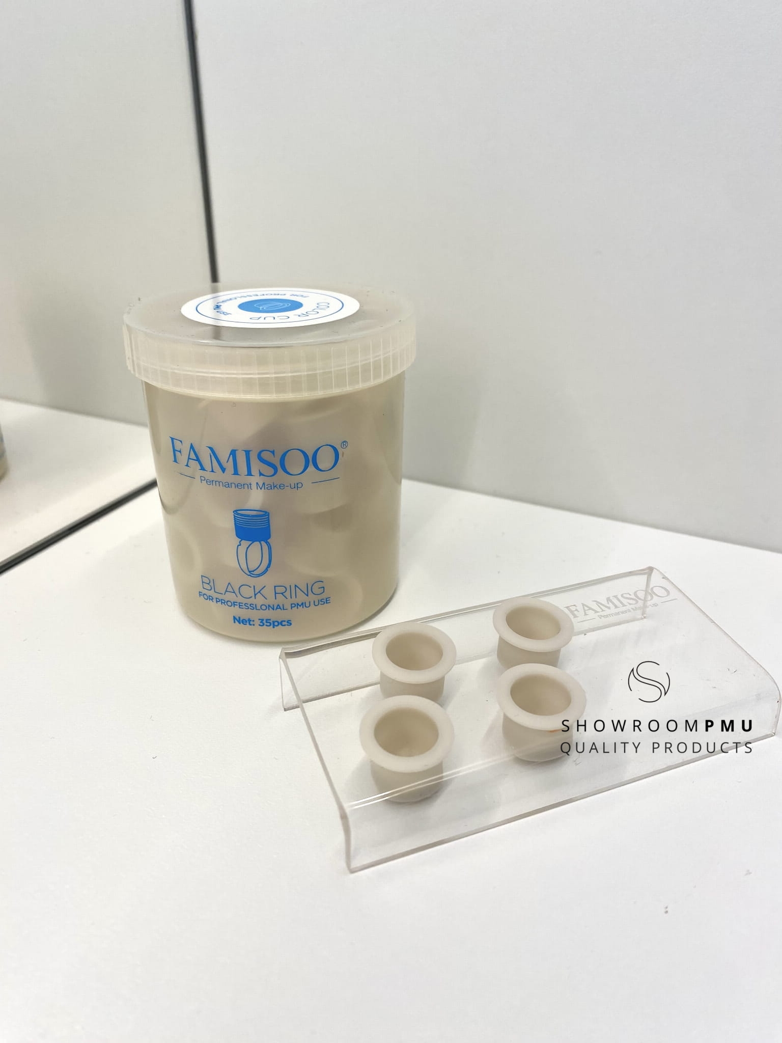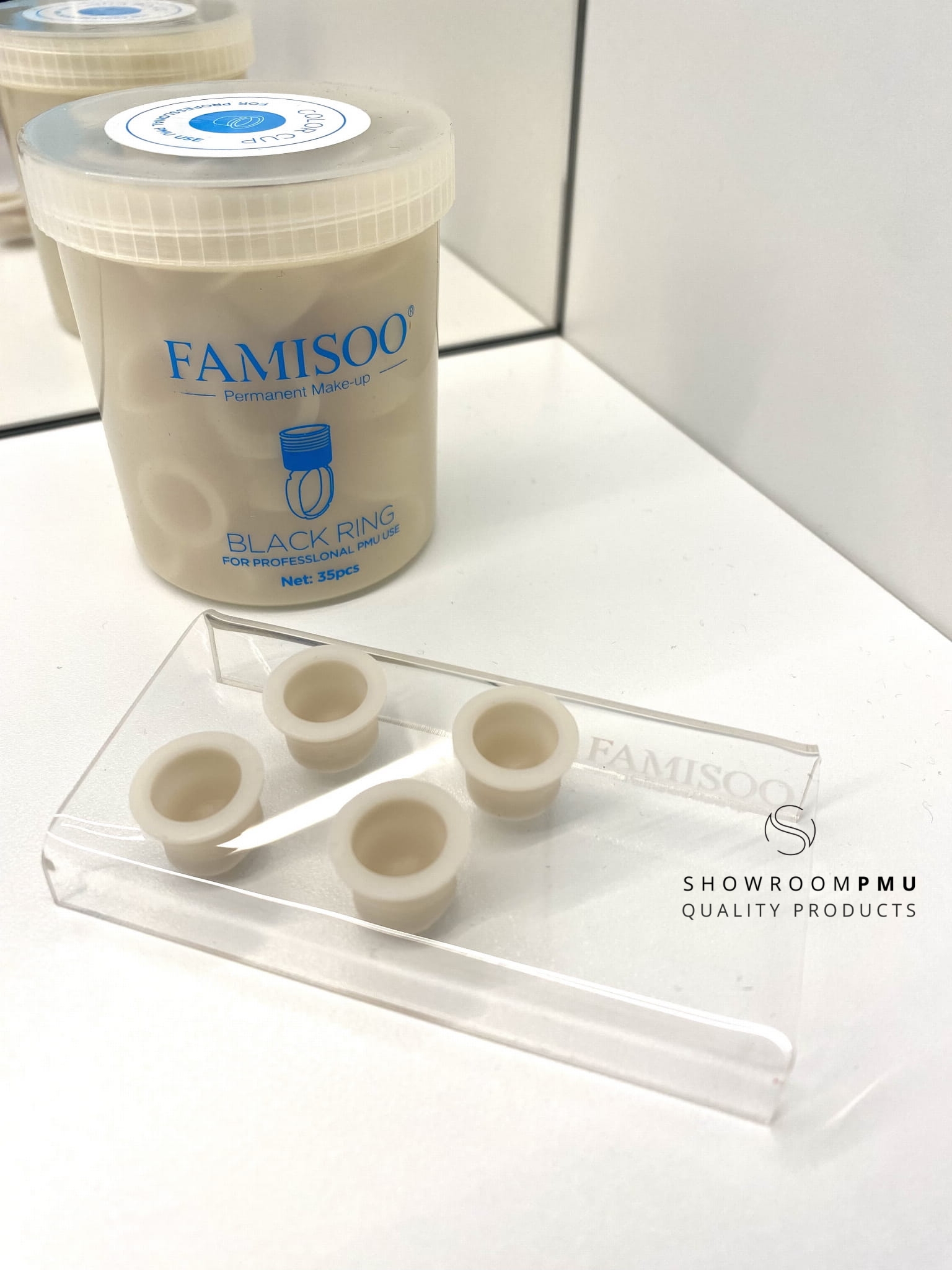 Duże kubeczki w kształcie cylindra, zrobione z grubego silikonu. Szeroka średnica oraz płaskie denko sprawiają, że trzymają się stabilnie zarówno w podstawkach, jak i pierścionkach na pigmenty.