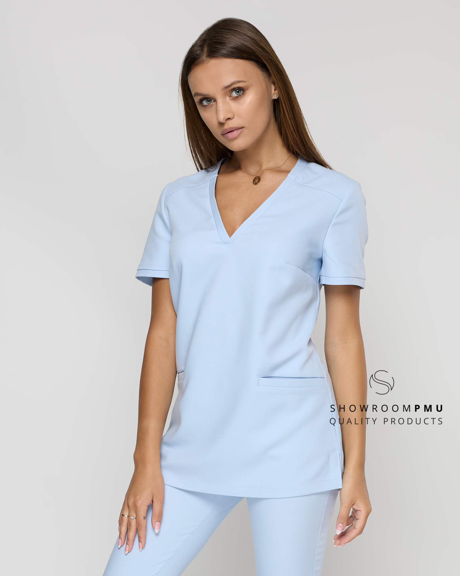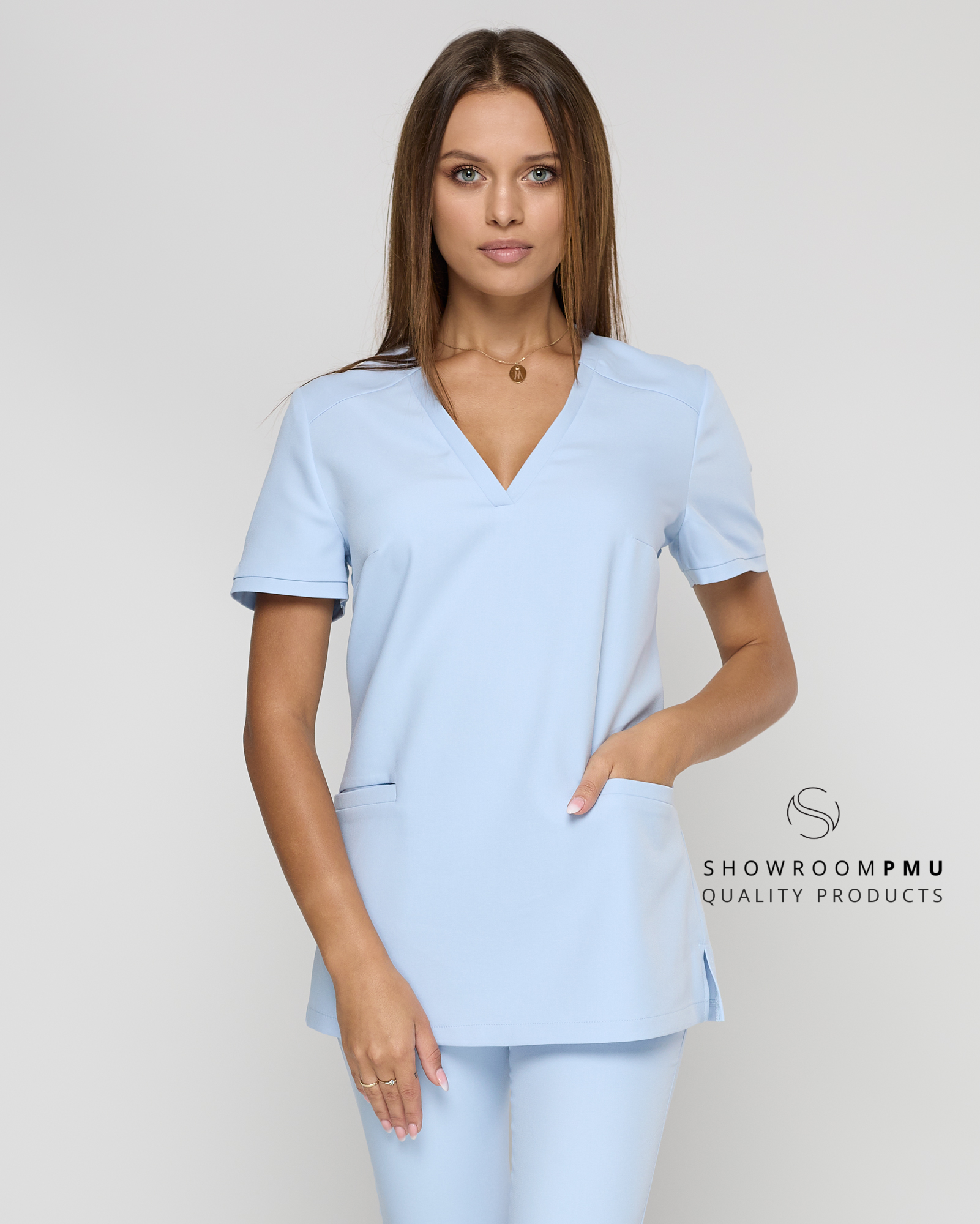 Elegancka i wygodna bluzka medyczna z głębokimi kieszeniami. Tworzy idealny zestaw scrubs, wraz ze spodniami z naszej oferty - model klasyczny lub joggery. Tkanina jest miękka i przyjemna w dotyku.