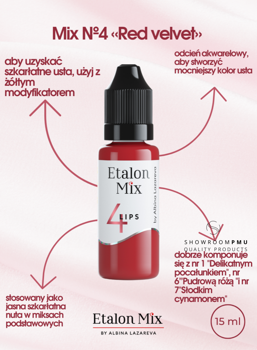 Etalon Mix 4 „Red Velvet” – pigment do makijażu permanentnego ust oraz tatuażu.