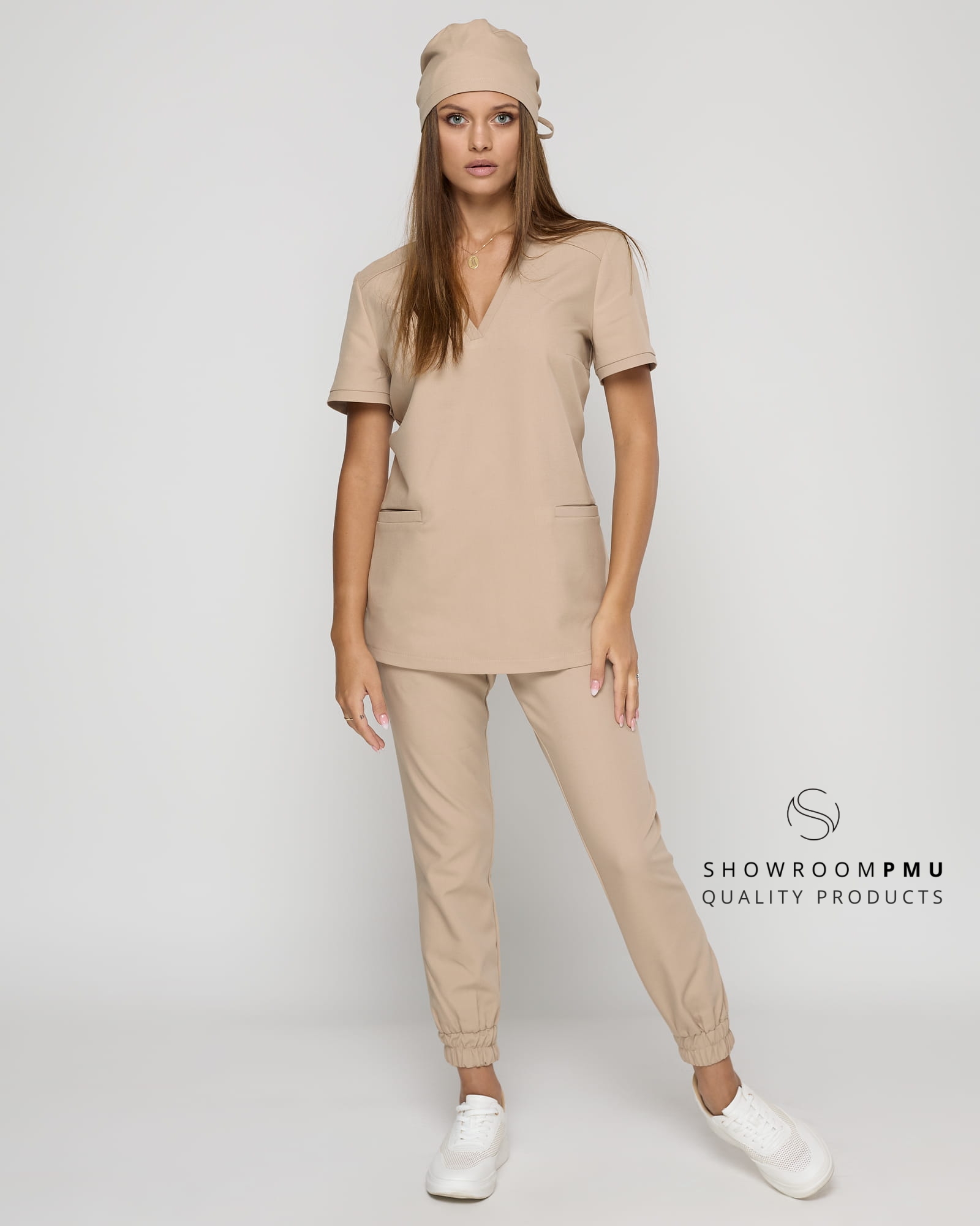 Spodnie typu joggery z głębokimi kieszeniami, gumą w pasie. Wykończone ściągaczem oraz slimowaną nogawką. Tworzy idealny zestaw scrubs, wraz z bluzkami medycznymi z naszej oferty.