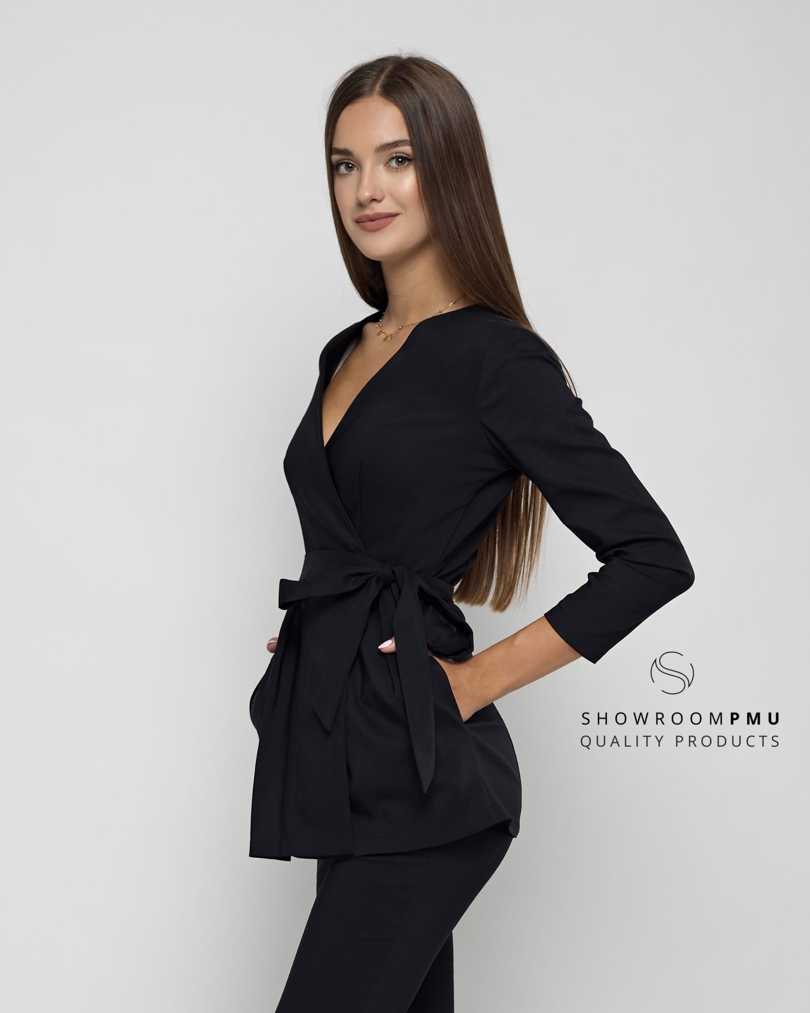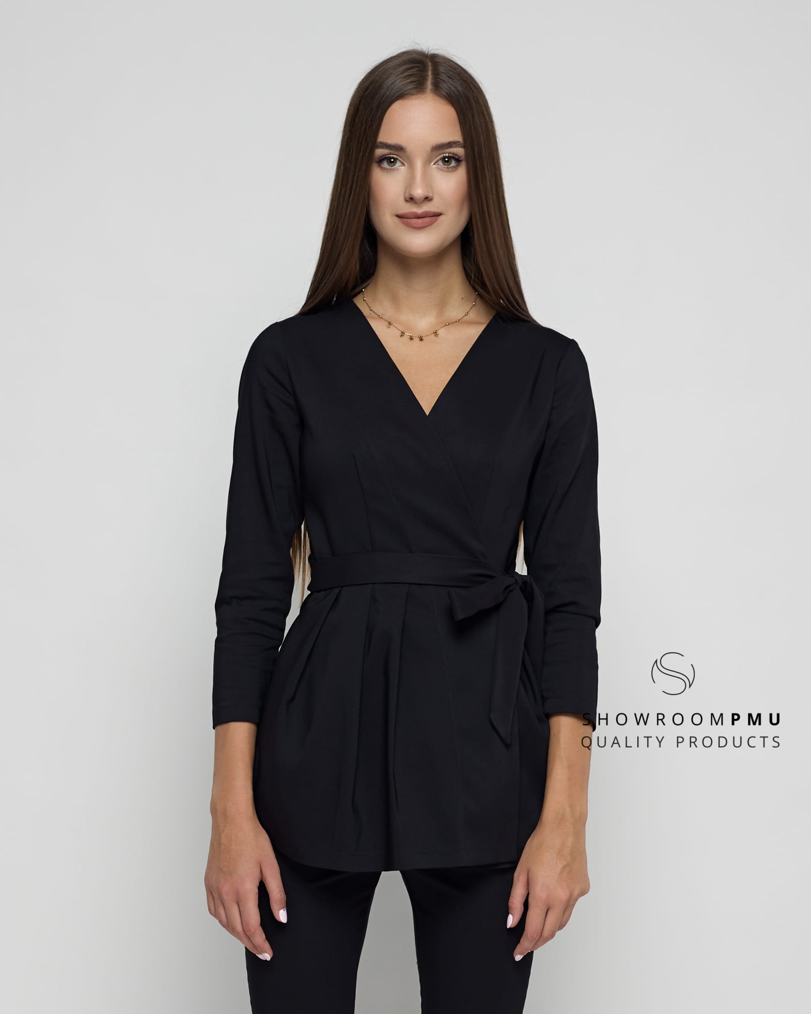 Uniform "Sophia" to niezwykle kobiecy model. Kopertowy dekolt oraz baskinkowy krój nadają wyjątkowości. Dzięki wiązaniu w pasie, strój można dopasować do każdej sylwetki.